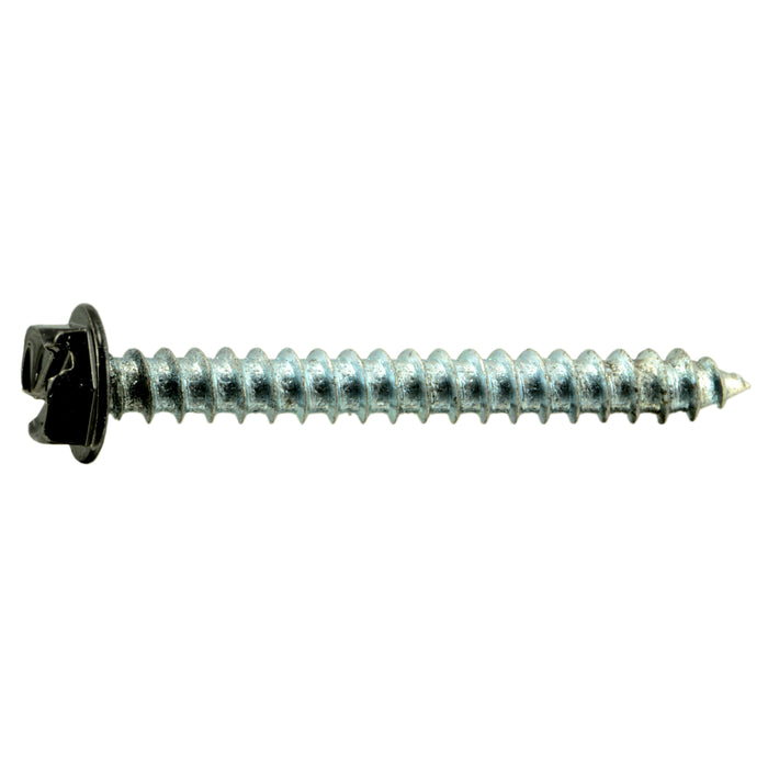 #8 x 1-1/2" Black Painted Steel Slotted Hex Washer Head Sheet Metal Screws