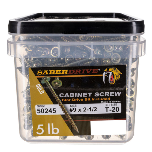 9 x 2-1/2" Star Drive Gold Cabinet Saberdrive Screws 5 lb. Tub (445 pcs.)